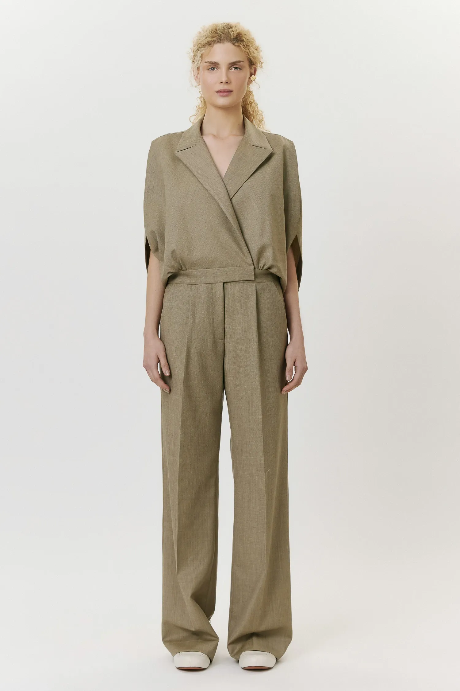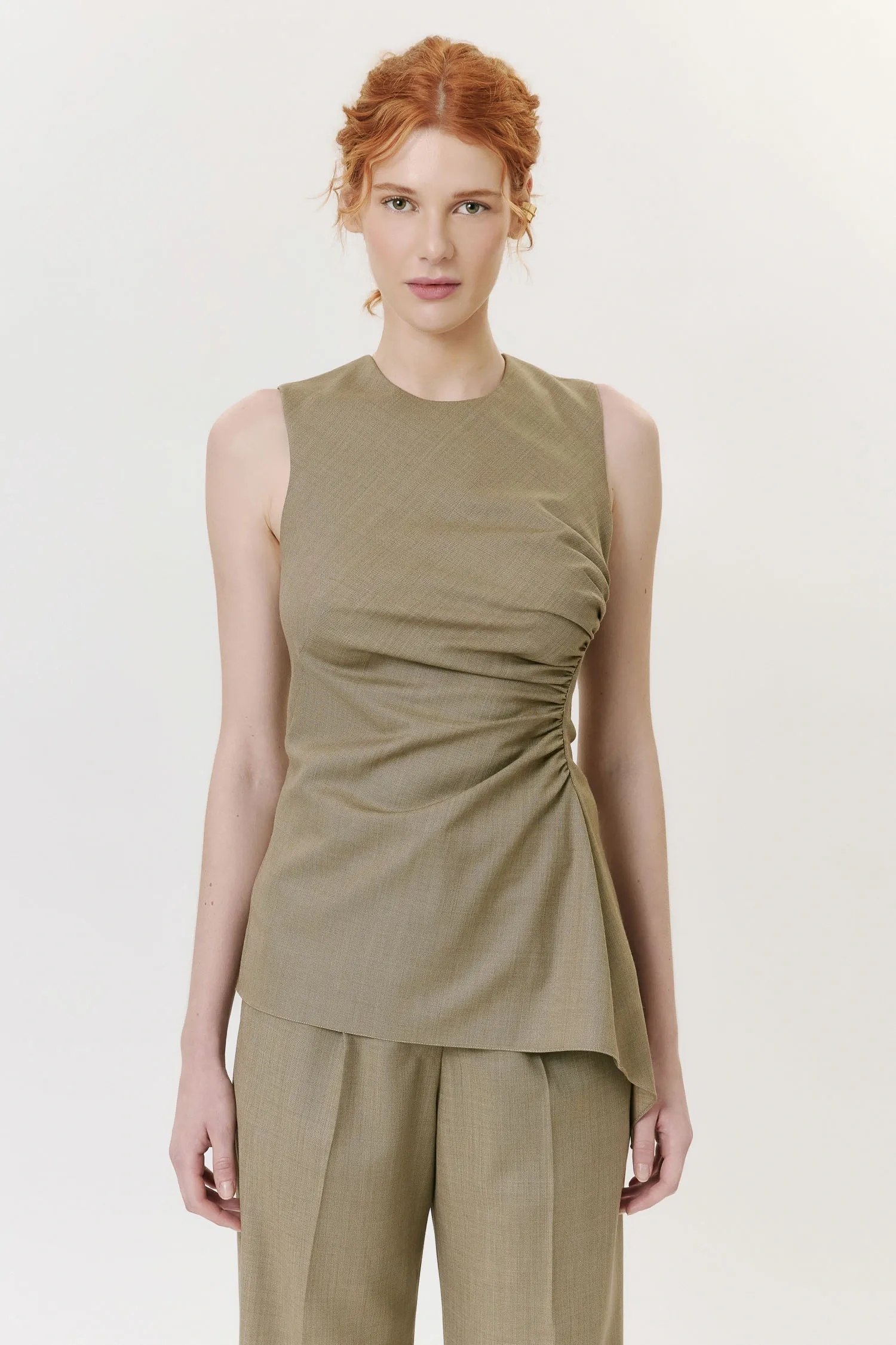 blusa de alfaiataria franzido lateral e ponta em lã sépia