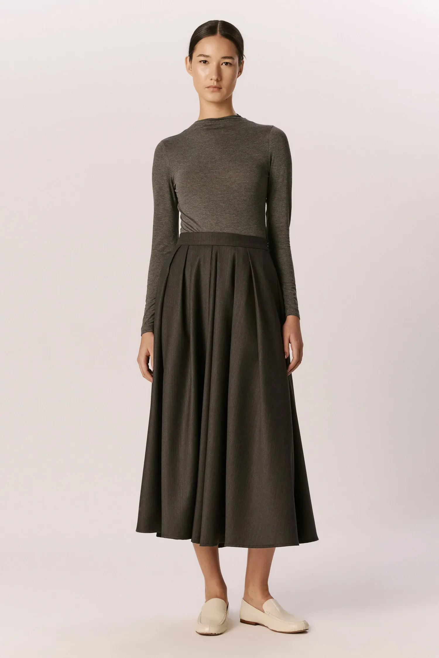 saia de lã pregas irregulares chumbo