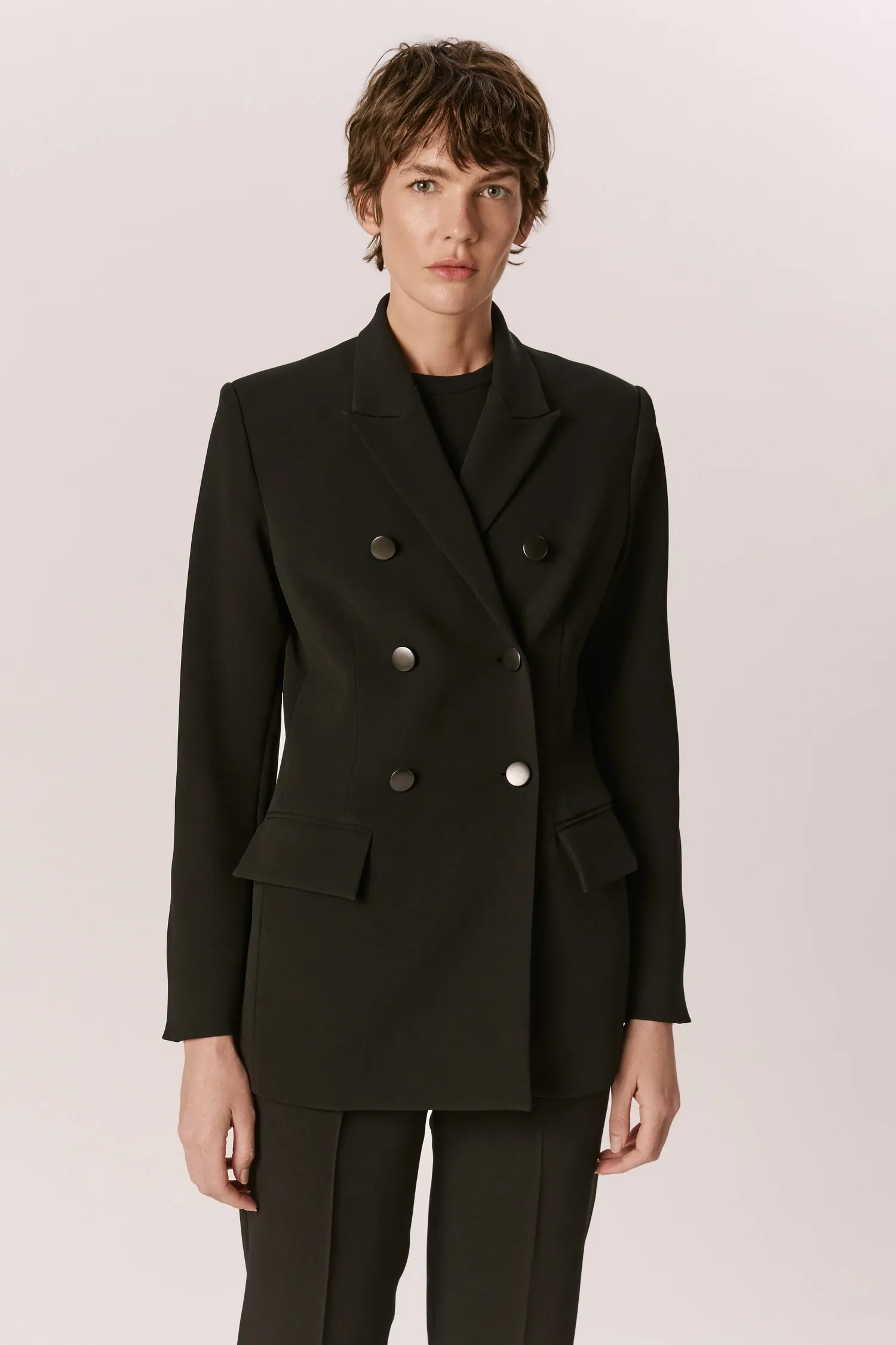macacão de alfaiataria decote alto preto