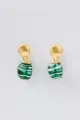 Brinco com círculo de metal côncavo sutilmente irregular e pingente de murano em formato de pitanga na cor Verde. Produto fabricado com técnicas de ourivesaria em metal com banho ouro 24K.