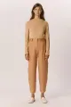 Calça de alfaiataria em algodão sarjado na cor Tan. Modelo baggy* com cintura alta, cós reto com passantes para cinto, pregas rasas, bolsos faca laterais e bolsos com tampa traseiros. Fechamento frontal por zíper e colchetes. O tecido utilizado possui baixa elasticidade.