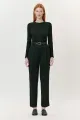 Calça de alfaiataria em lã fria na cor Preta. Com modelagem cenoura* a peça possui cintura alta e cós estruturado com passantes para cinto. O modelo possui pregas rasas, bolsos faca nas laterais e bolsos traseiros embutidos com viés, alcinha e botão. Fechamento frontal por zíper e colchetes.