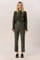 Calça de alfaiataria em algodão acetinado na estampa Besouro Mini. O modelo é reto com cintura regular, bolsos faca nas laterais e bolsos traseiros de casa inglesa. Fechamento frontal por zíper e colchetes. O tecido utilizado possui baixa elasticidade.