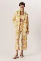 Peça feita em linho puro na estampa Floral Amarelo. Calça de alfaiataria com cintura alta, sem cós e perna reta levemente ampla. Possui passantes para cinto, bolsos faca laterais e bolsos traseiros de casa inglesa. Fechamento frontal por zíper e colchetes.