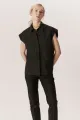 Peça feita em tricoline de algodão na cor Preta. Camisa sem manga com shape box oversized*, com dois bolsos laterais de casa inglesa com faixas e botão para ajuste. Fechamento frontal por botões não aparentes.
