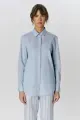 Camisa em tricoline de algodão na cor Azul. A peça possui modelagem clássica e caimento reto. Modelo com mangas longas, barra levemente arredondada e fechamento frontal por botões não aparentes. O tecido utilizado não possui elasticidade.