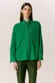 Camisa em voil de algodão na cor Verde. Modelagem oversized*, possui colarinho, mangas longas e bolso frontal deslocado. Fechamento frontal por botões não aparentes. O tecido utilizado não possui elasticidade.