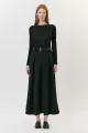 Saia midi em lã fria na cor Preta. A peça possui caimento evasê* amplo com pregas profundas, cintura regular e cós estruturado com passantes para cinto. O modelo conta com bolsos faca nas laterais e fechamento frontal por zíper e colchetes.