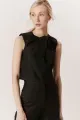 Peça feita em algodão acetinado na cor Preta. Top de alfaiataria sem mangas, com shape reto e comprimento cropped. Possui detalhe no decote com transpasse e pregas irregulares. Fechamento por zíper invisível no centro das costas.