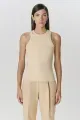 Top em malha compacta na cor Chino. O modelo possui modelagem justa ao corpo sem manga, com decote redondo e cava nadador. Fechamento por zíper esportivo no centro das costas. O tecido utilizado possui média elasticidade.